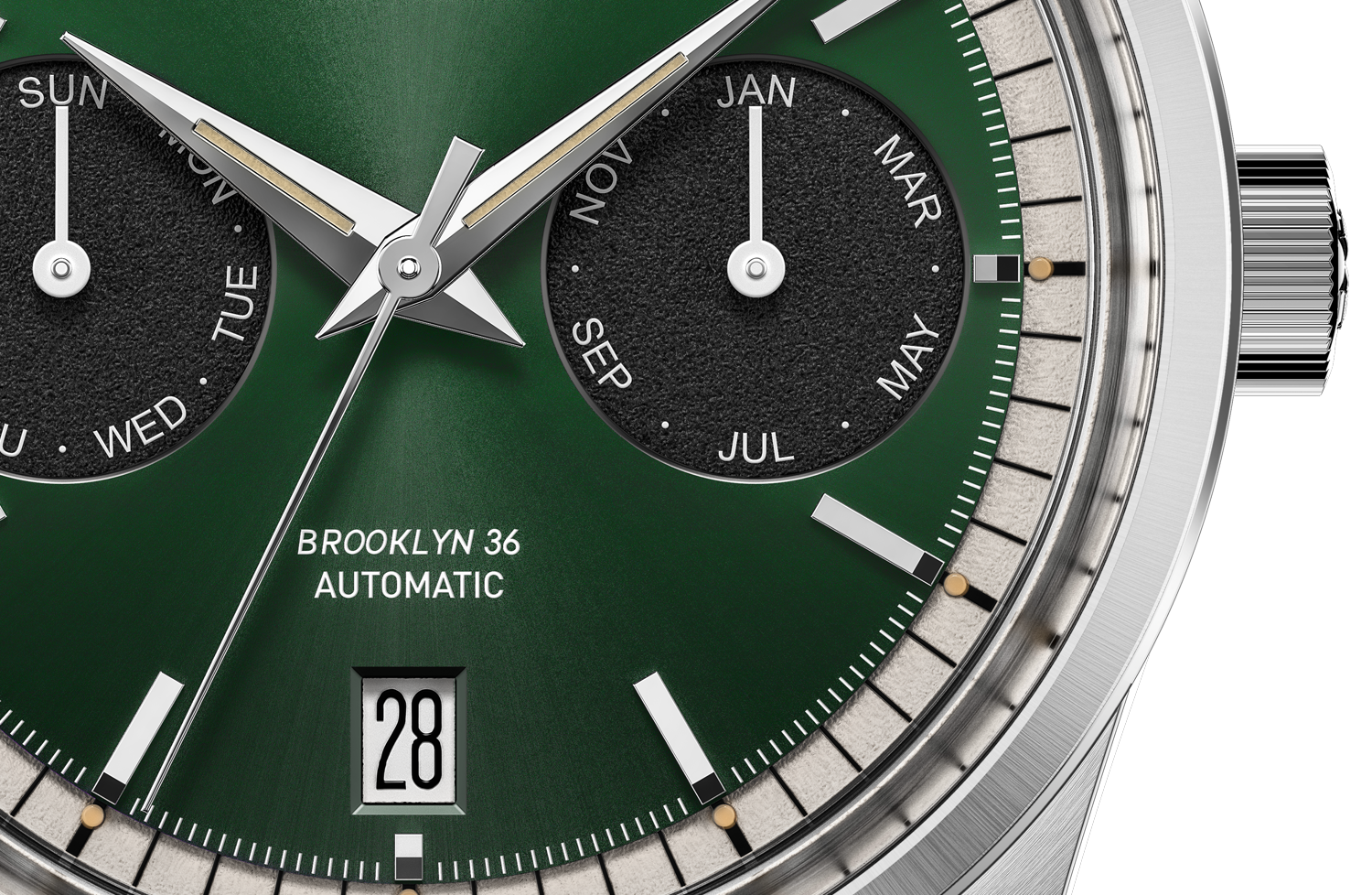 The dial is definitely one of the highlights of the Brooklyn 36. We spent lots of time finding the right balance between design and legibility to house the full triple calendar complication.