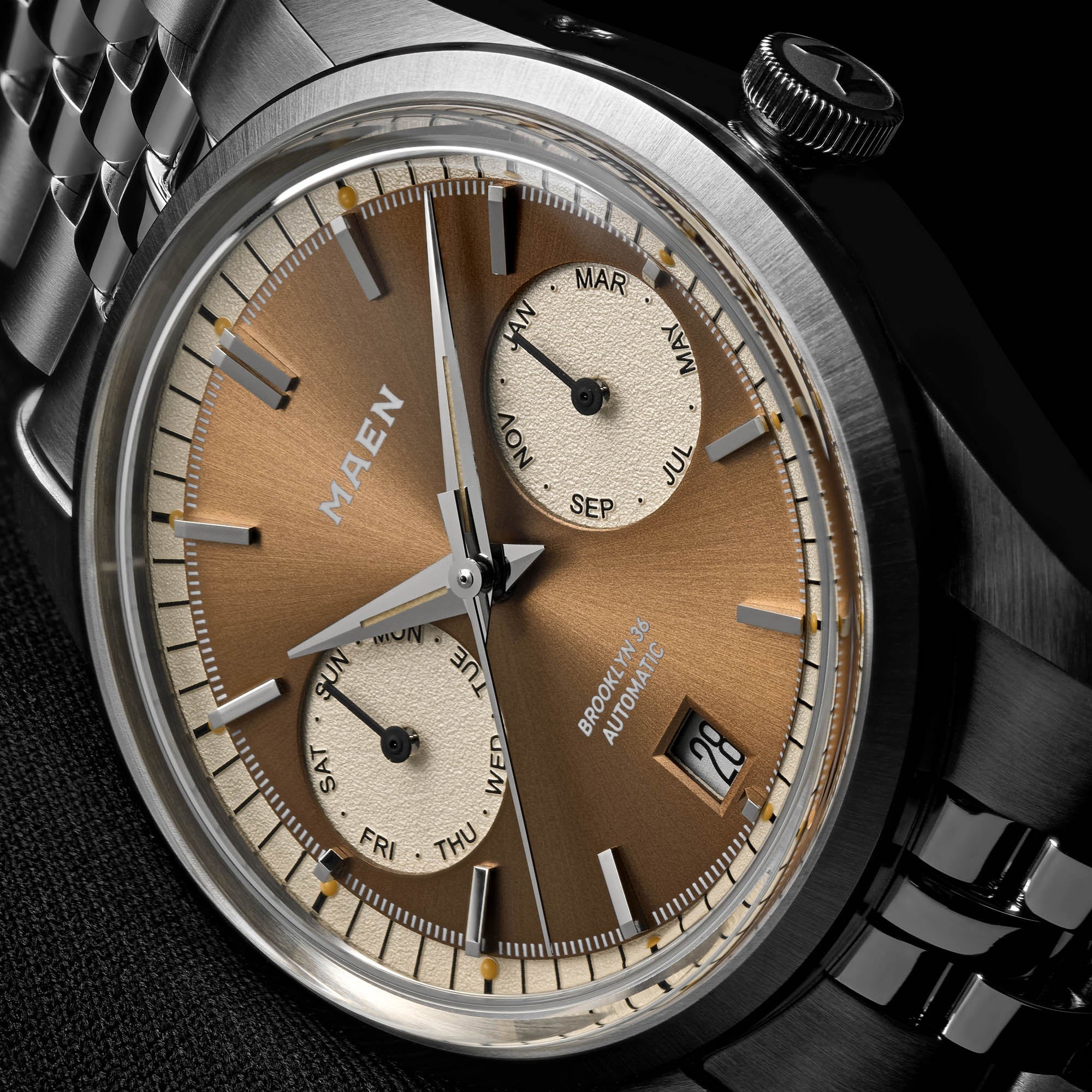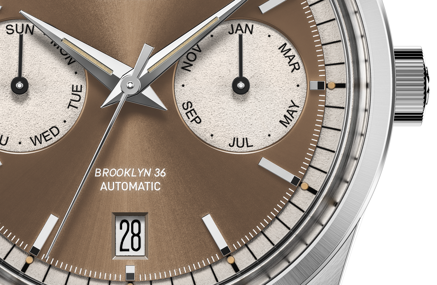 The dial is definitely one of the highlights of the Brooklyn 36. We spent lots of time finding the right balance between design and legibility to house the full triple calendar complication.