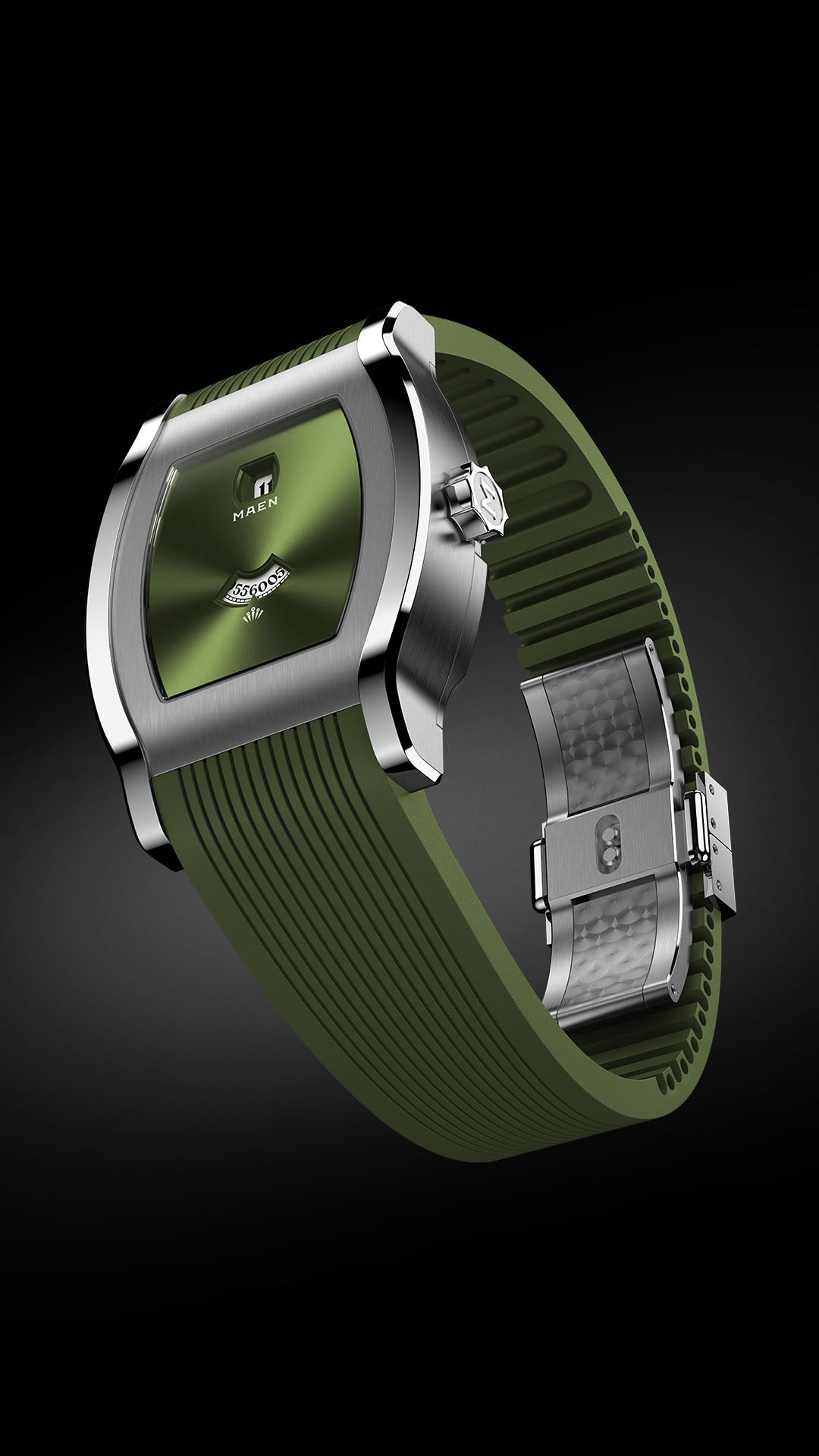 For the Grand Tonneau Jump Hour, we have designed a custom integrated FKM rubber strap that seamlessly follows the contours of the case, accentuating its striking angles. Crafted from premium FKM rubber, the strap offers exceptional durability and a comfortable fit.