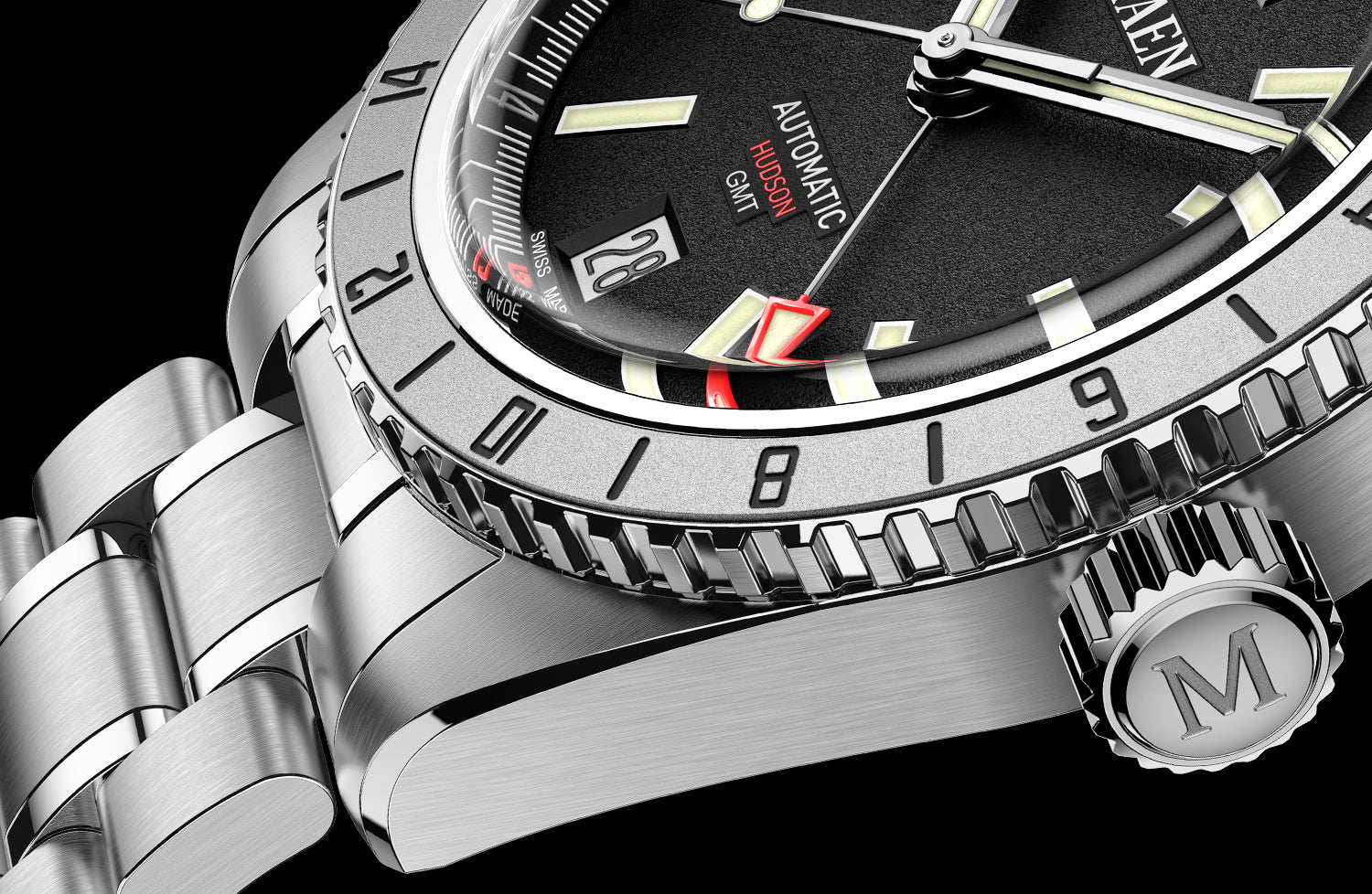 When it comes to dial design it is all about proportions and finding the right balance. The Hudson 38 GMT dial was carefully designed to create an interesting yet very readable look.