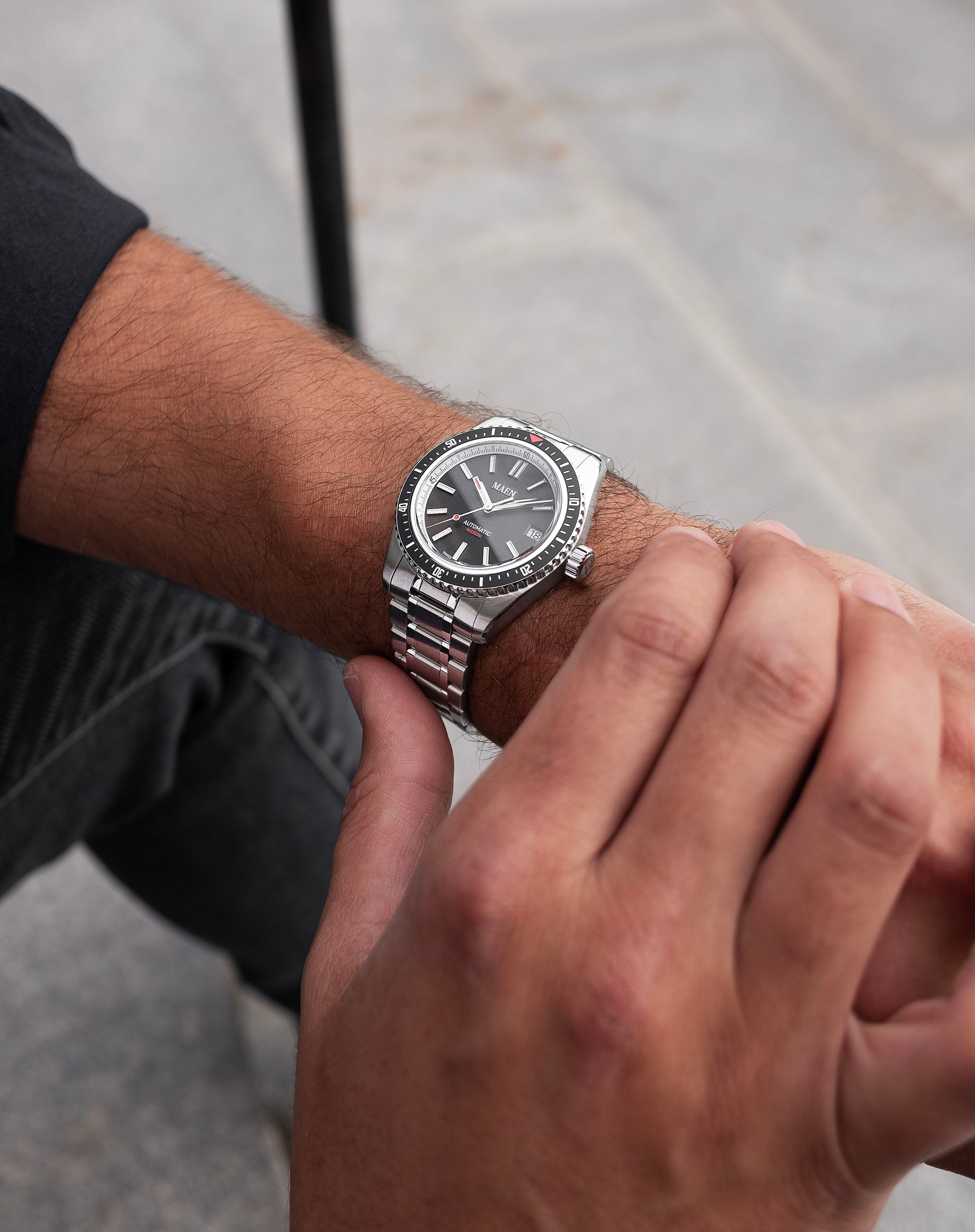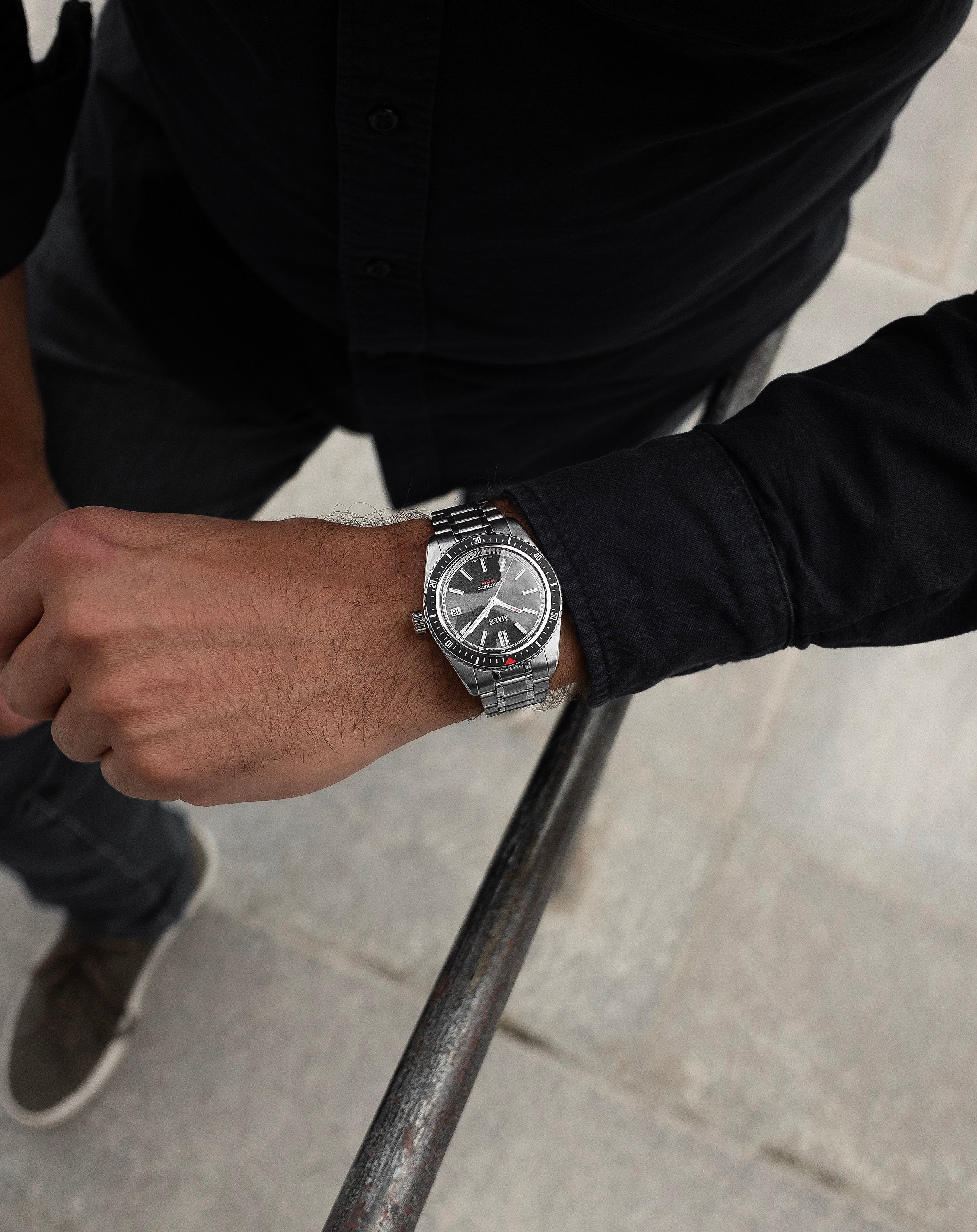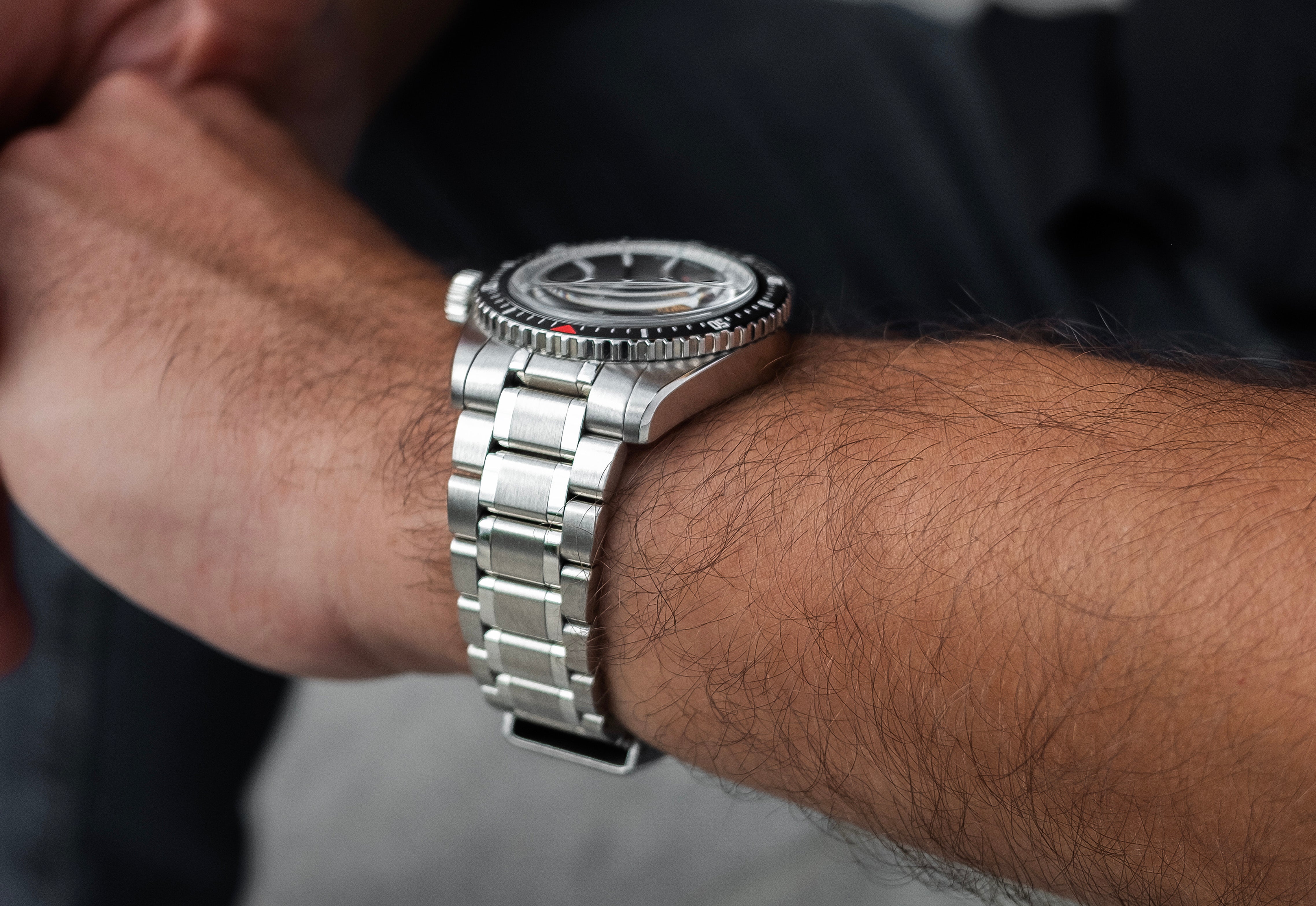 The case for the Hudson MK4 has been completely re-designed from scratch. The new deeper engraved bezel structure now has a mixed polished and brushed finish assuring better grip. We also upgraded to a ceramic bezel insert with engraved markers.