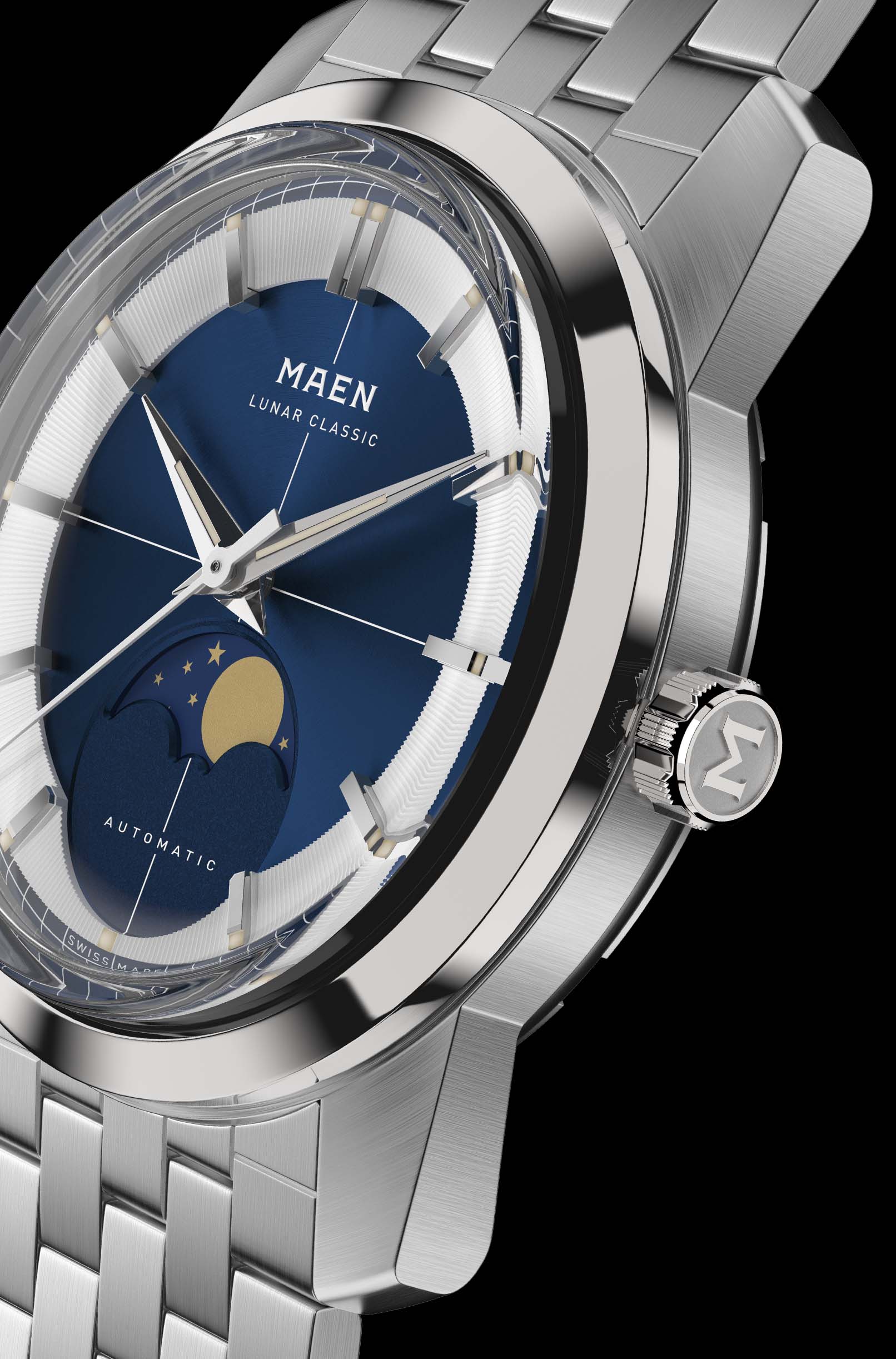 Not only was our first ever release a moonphase, our brand name, Maen, means “moon” in Old Dutch. No collection, especially ours, is complete without paying respect to the ultimate symbol of time. The Elaboré Grade Sellita SW280-1 Automatic Movement has been chosen to be housed within the 36mm case of the Lunar Classic. Beating at 28,800bph with a power reserve of approximately 40 hours, the SW280-1 was the perfect choice.