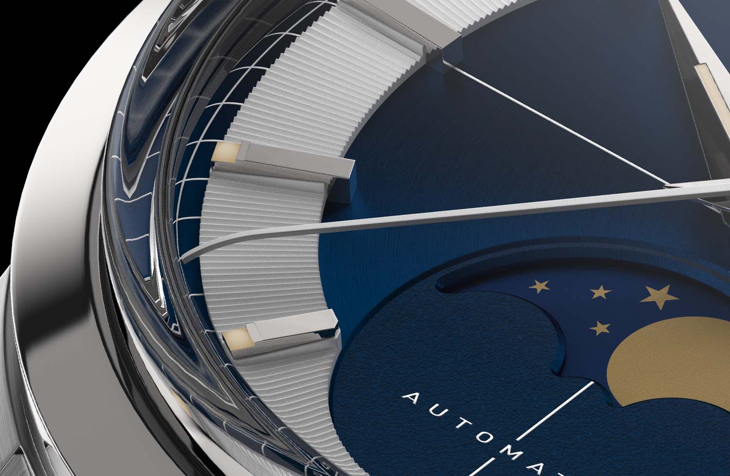 This striking new dial centers around highlighting the moonphase complication without sacrificing detail. Something special can be found in every aspect of this exquisite dial.