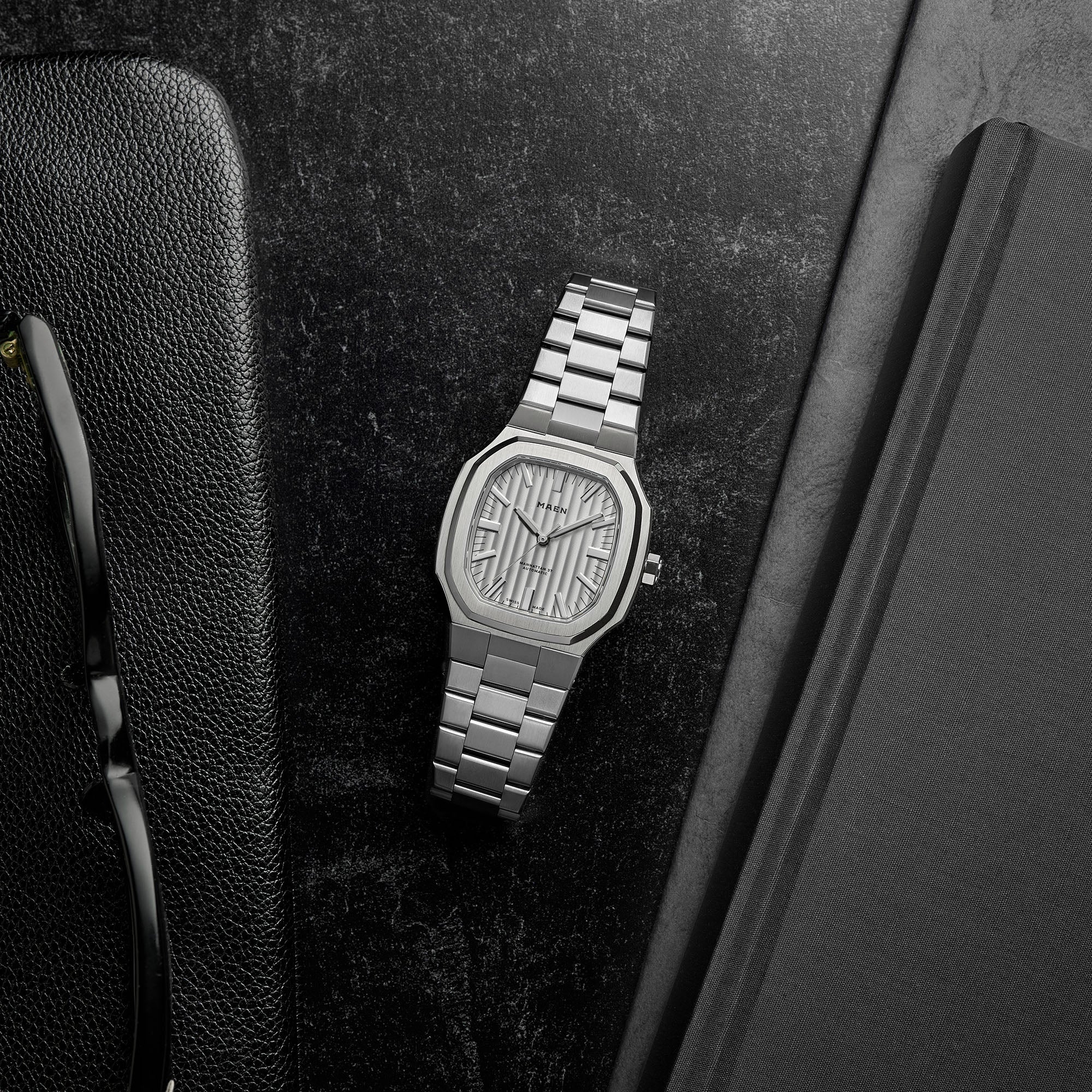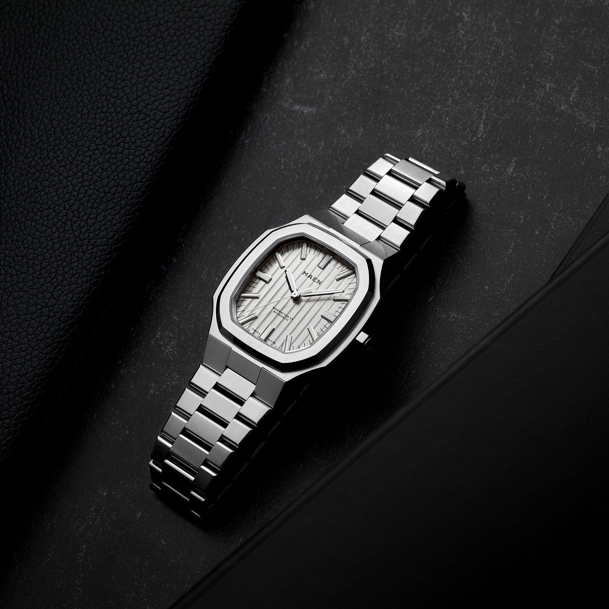 With its steel case, vertically elongated octagonal bezel, Côtes de Genève dial and integrated bracelet, the Manhattan 37 packs a lot of punch. Due to the integrated design the watch wears larger than its modest 37 mm would suggest.