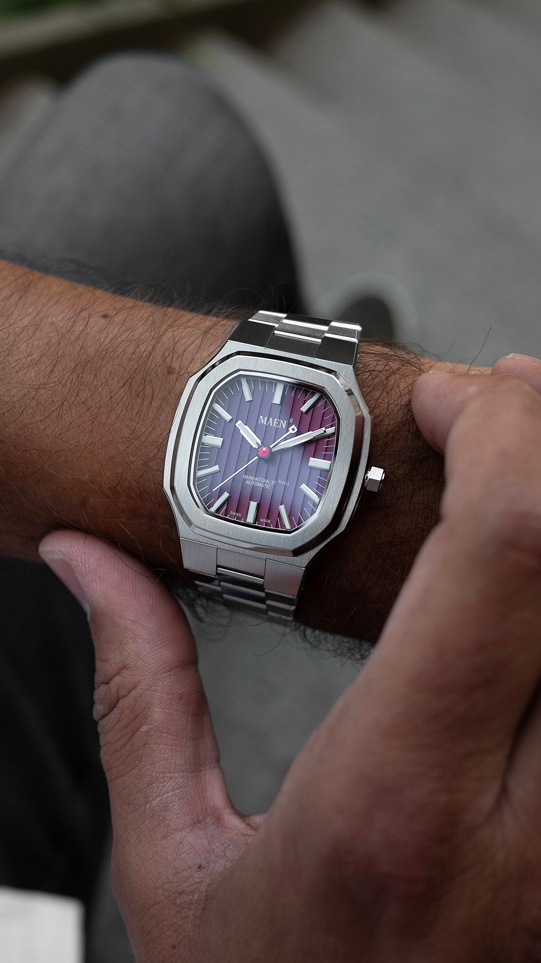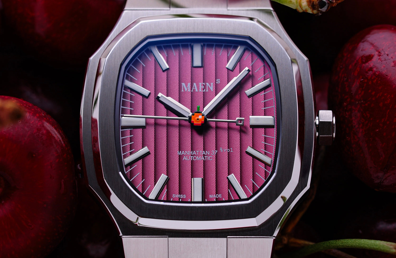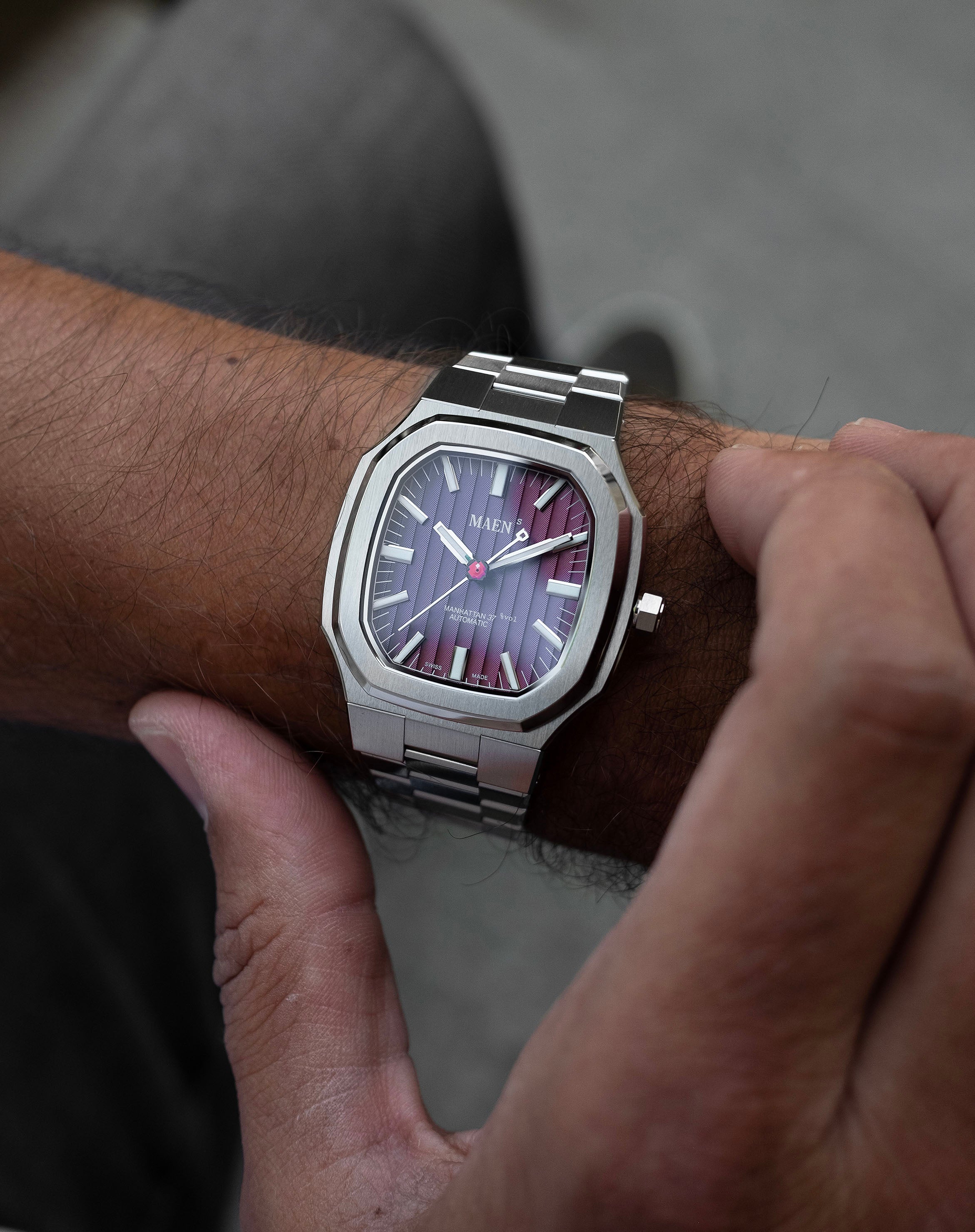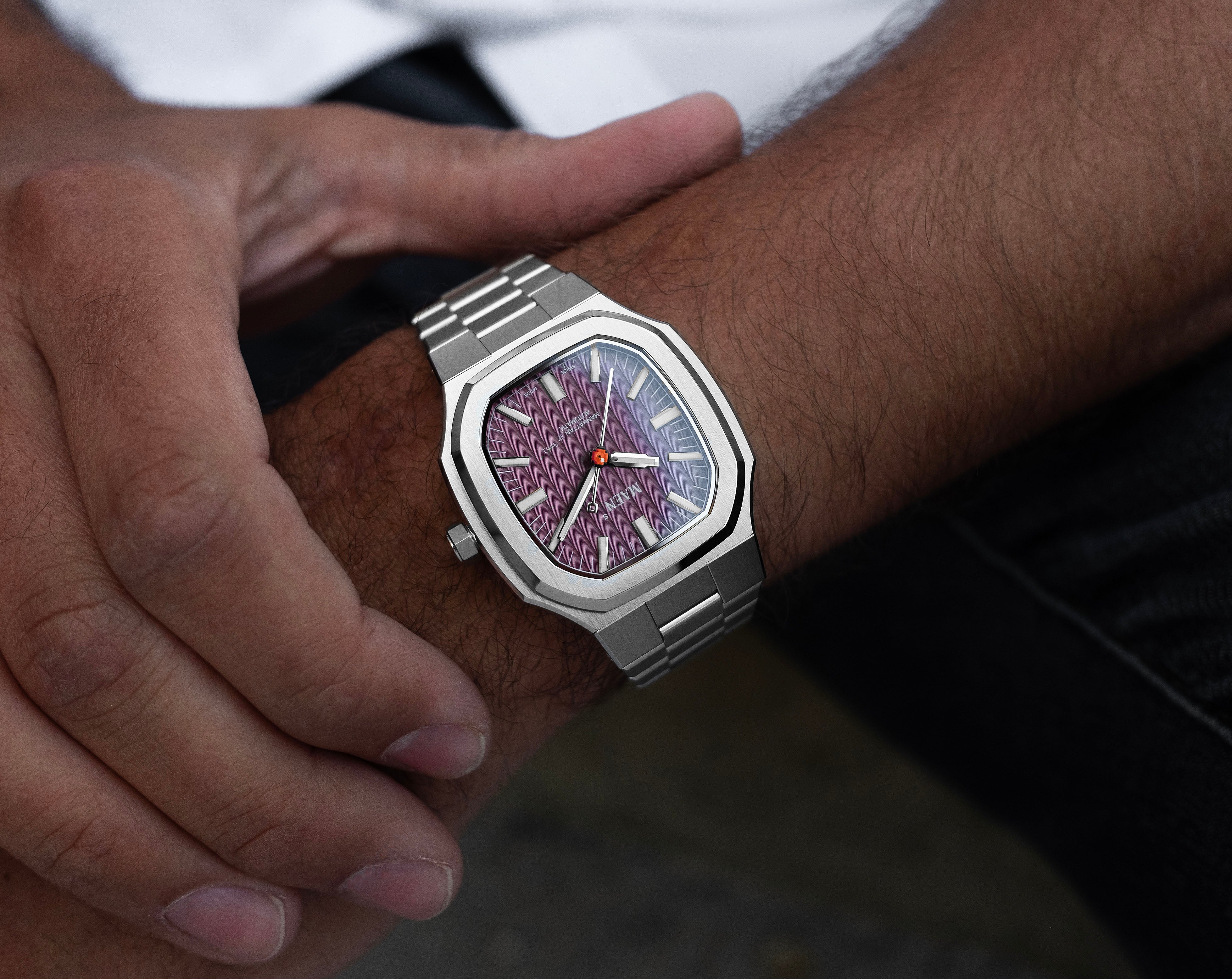 The Manhattan 37 has an unique vertically elongated Côtes de Genève dial that creates a spectrum of beautiful shimmers depending on the lighting.
