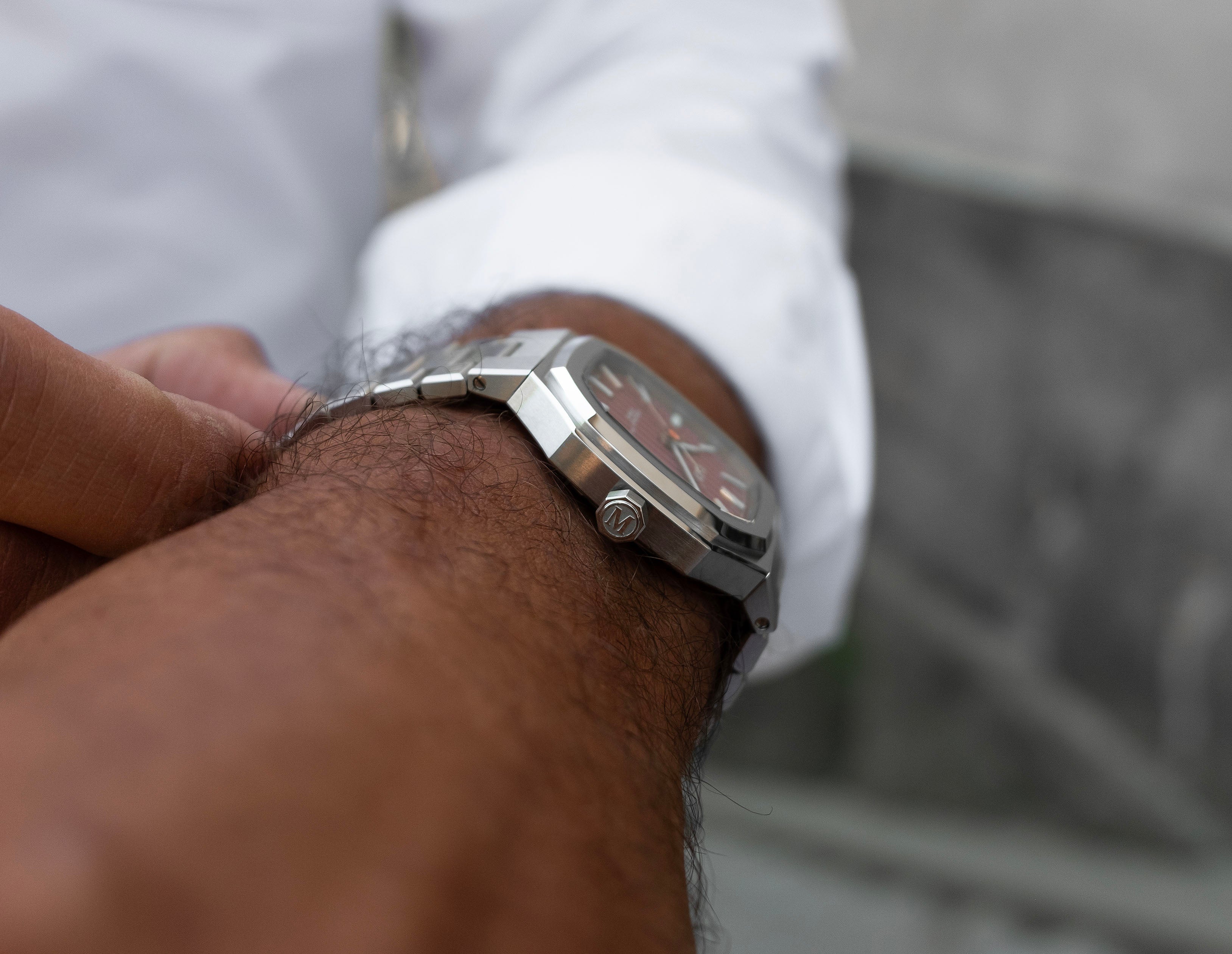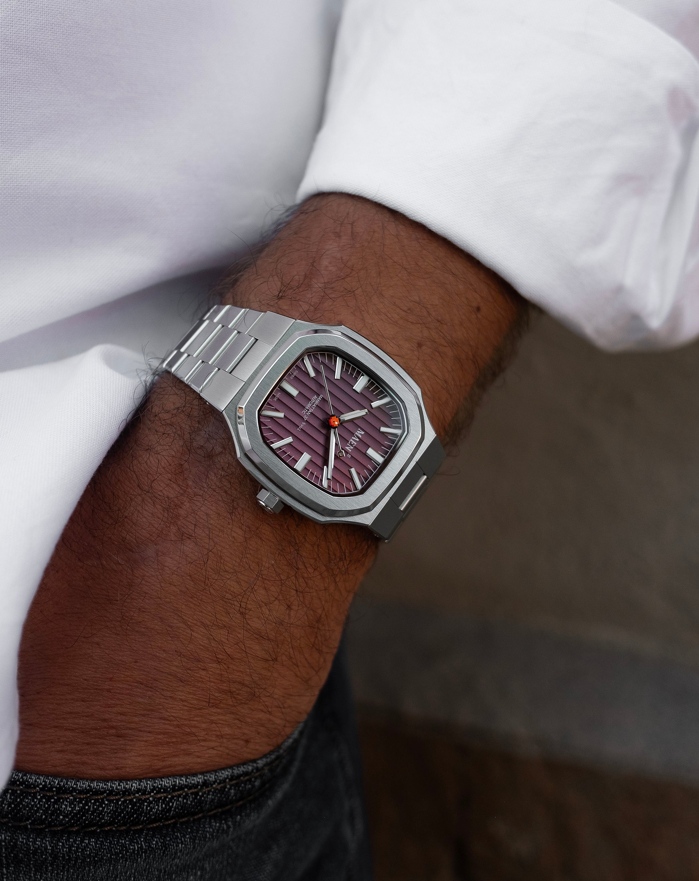With its steel case, vertically elongated octagonal bezel, Côtes de Genève dial and integrated bracelet, the Manhattan 37 packs a lot of punch. Due to the integrated design the watch wears larger than its modest 37 mm would suggest.