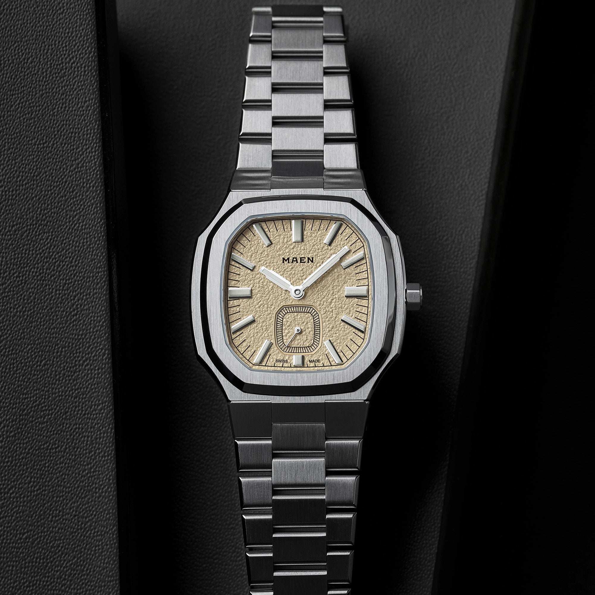 The Manhattan 37 Ultra-Thin features an integrated stainless steel bracelet with a hidden deployment clasp. We did not cut any corners with this bracelet.