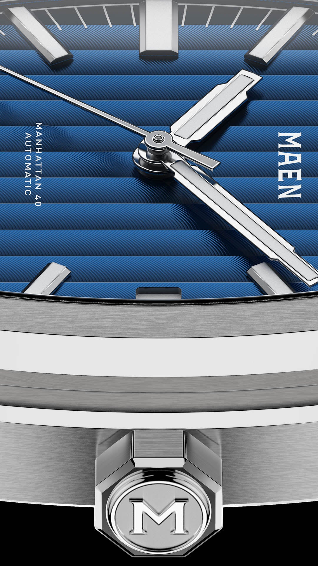 The Manhattan 40 has an unique vertically elongated Côtes de Genève dial that creates a spectrum of beautiful shimmers depending on the lighting.