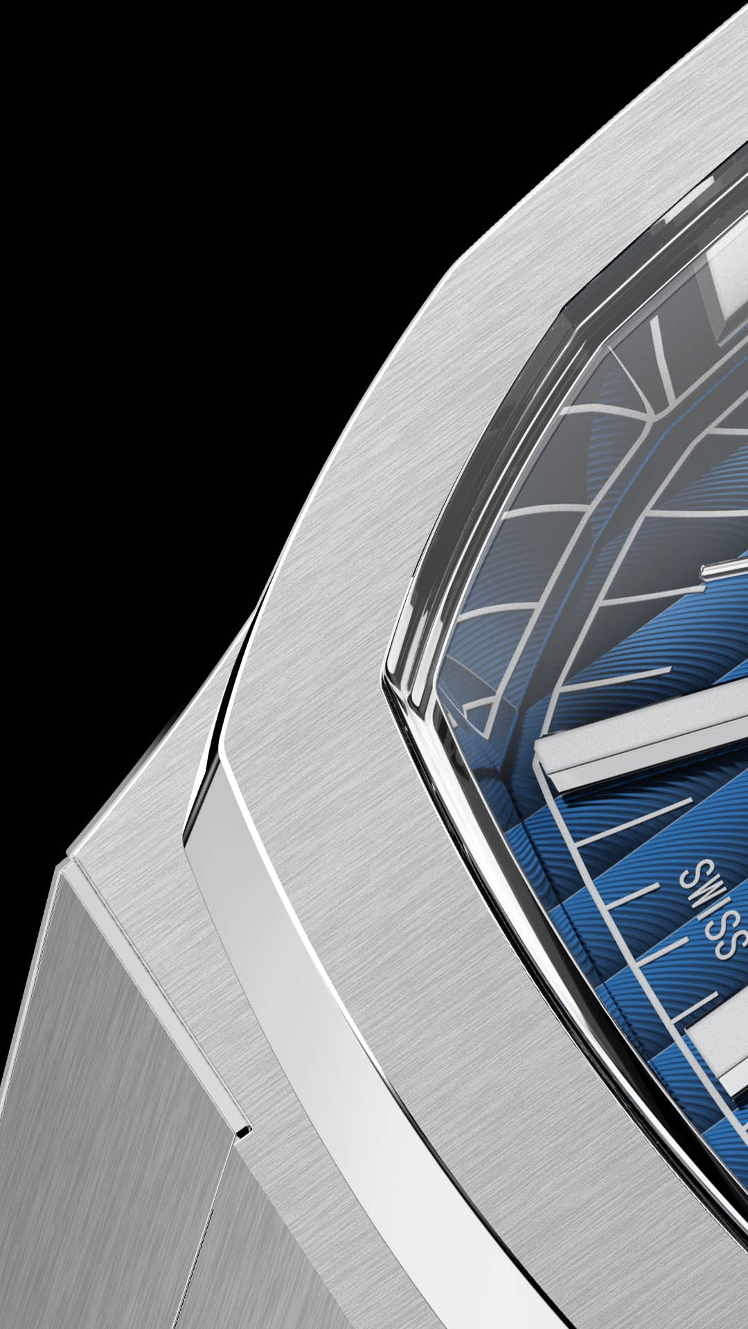 The Manhattan 40 has an unique vertically elongated Côtes de Genève dial that creates a spectrum of beautiful shimmers depending on the lighting.