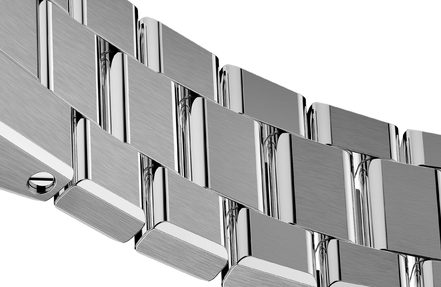 The combination of polished and satin-brushed finishes highlight the unique shape of the case and bracelet.
