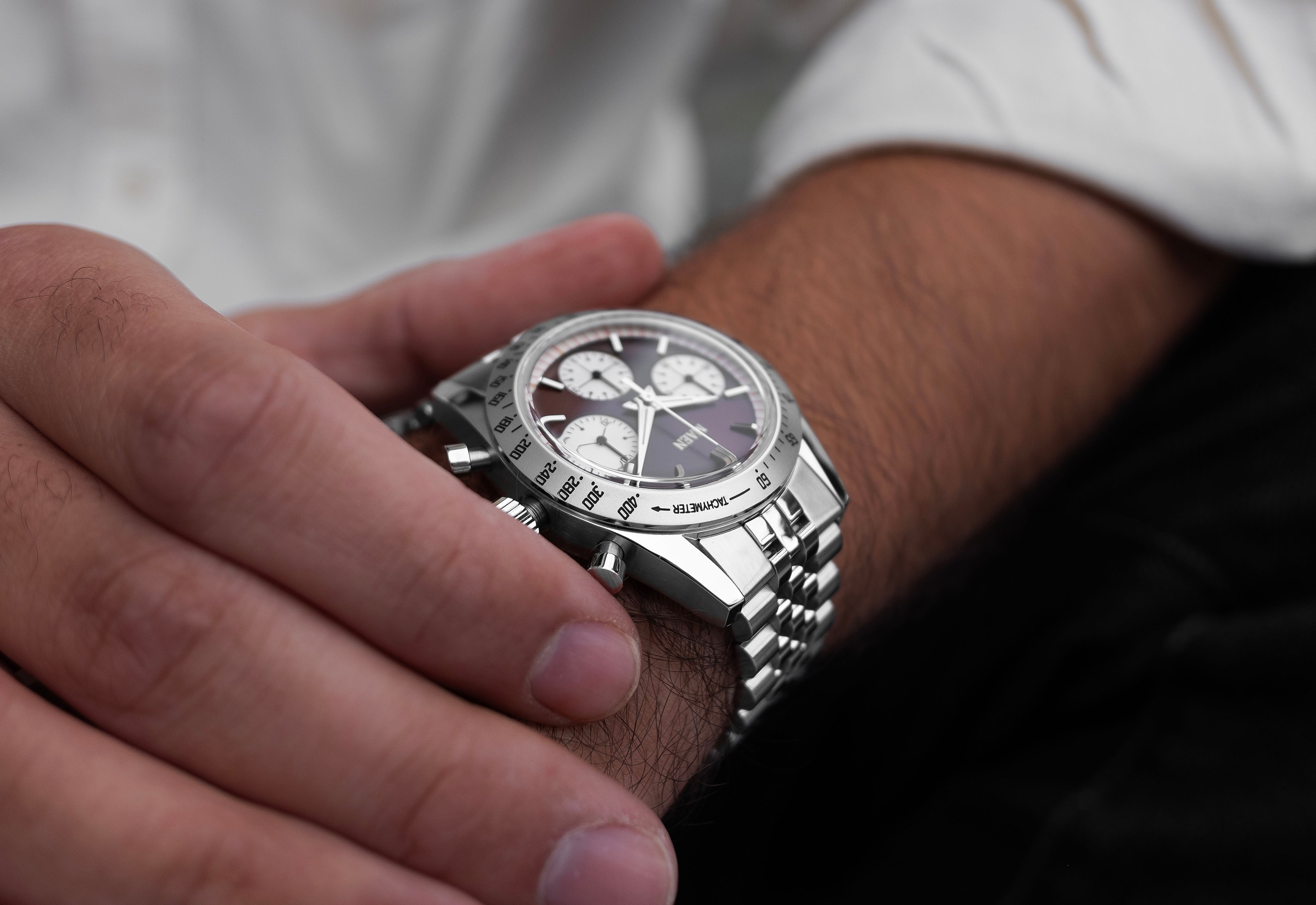 Drawing inspiration from the chronograph watches of the 1960s and 70s, this special edition celebrates details such as the exotic dials found across several watch brands of the period, plus the tropical colouration older watches have been known to take—here in an eye-catching sunburst. It’s the perfect watch for collectors looking to enjoy an iconic period of chronograph design.