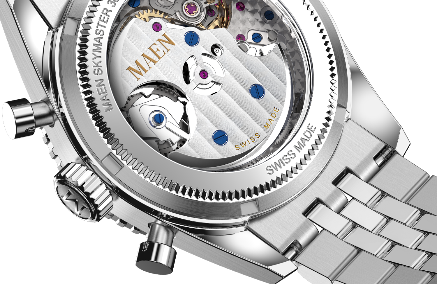 For the Skymaster we use the Top Grade, fully decorated version that can be seen through the open caseback. Designed to meet the highest horological standards, this movement guarantees exceptional accuracy and longevity, ensuring your timepiece remains a faithful companion for generations to come.